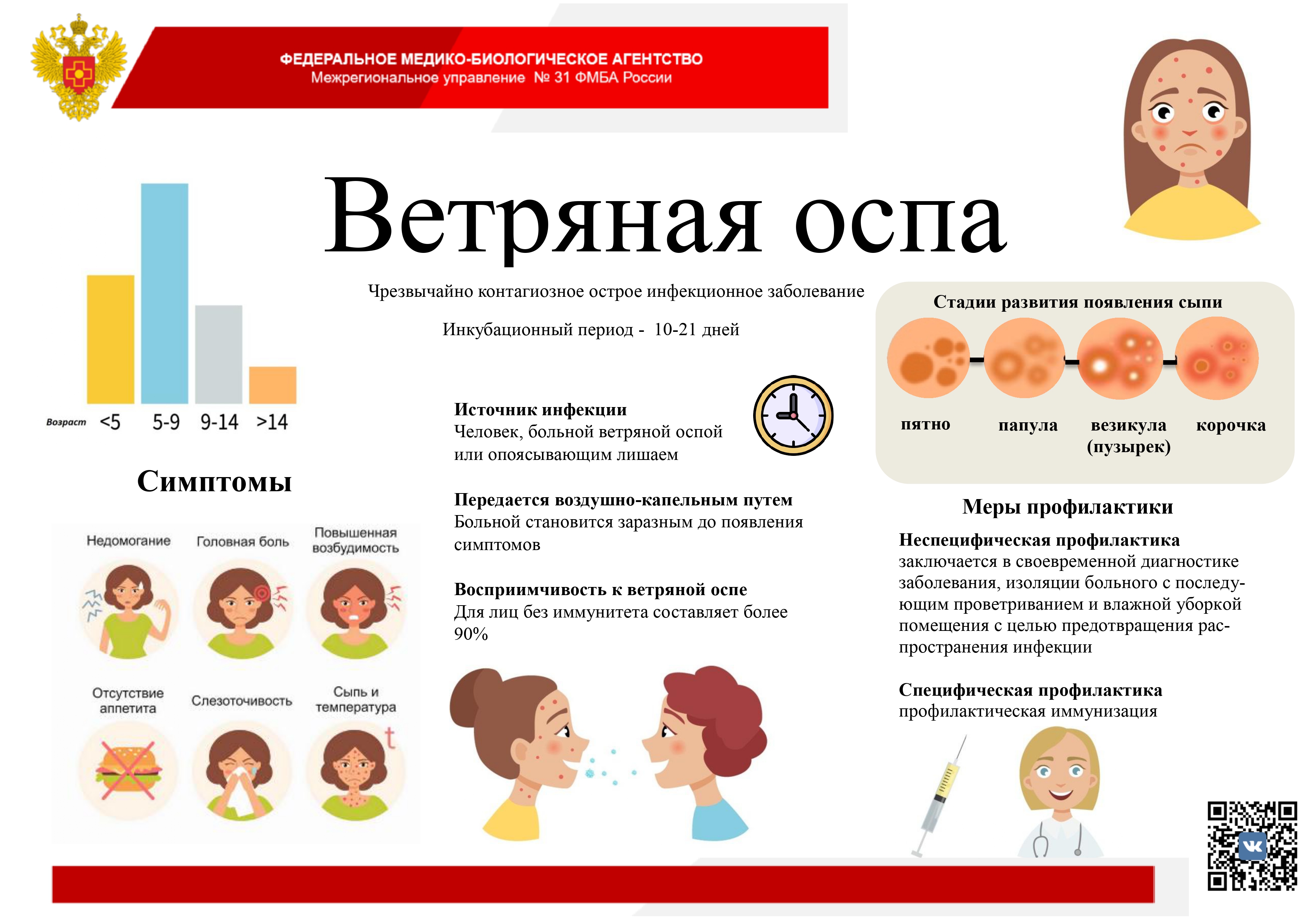 ‼Ветряная оспа — это высоко заразное инфекционное заболевание, вызываемое вирусом герпеса 3-го типа, передающееся воздушно-капельным путем, характеризующееся лихорадкой и толчкообразным появлением на коже и слизистых полиморфной пятнисто-везикулезной сыпи.